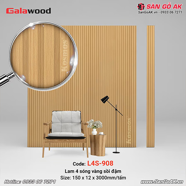 - Lam 4 sóng Galawood L4S-908 vân gỗ sồi vàng đậm