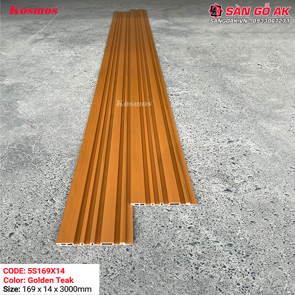 - Giới thiệu về tấm ốp lam sóng gỗ nhựa phủ ASA Kosmos 5S169X14 Golden Teak