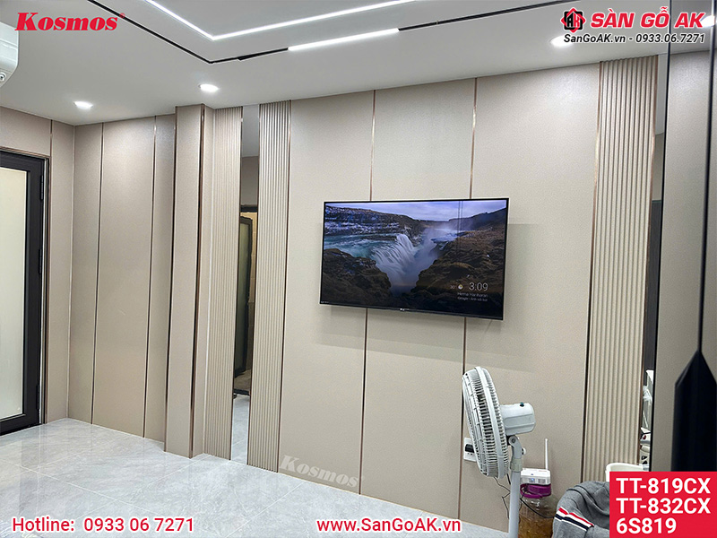 Tạo điểm nhấn ấn tượng cho vách tivi phòng khách với lam sóng 6S819