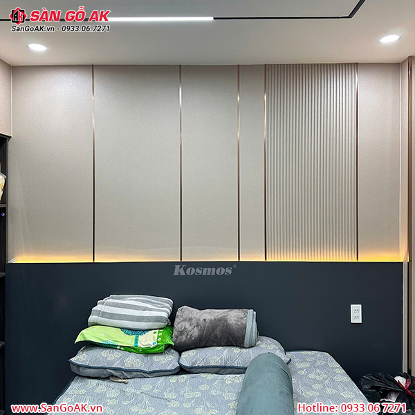 Ốp vách đầu giường phòng ngủ bằng lam sóng than tre vân vải