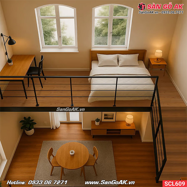 Trang trí gác lửng với sàn chịu lực Galawood SCL609 vân gỗ vàng cam