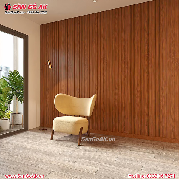 Trang trí tường nhà sang trọng với lam 3 sóng vân gỗ đỏ cam