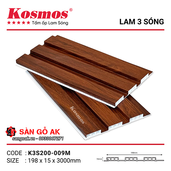 Lam sóng Kosmos K3S200-009M có thiết kế 3 sóng vân gỗ nâu
