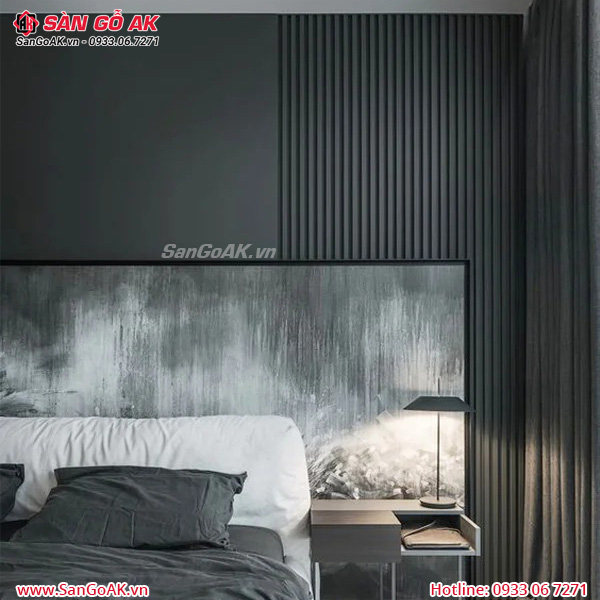 Ốp vách đầu giường phòng ngủ sang trọng với lam 4 sóng màu đen