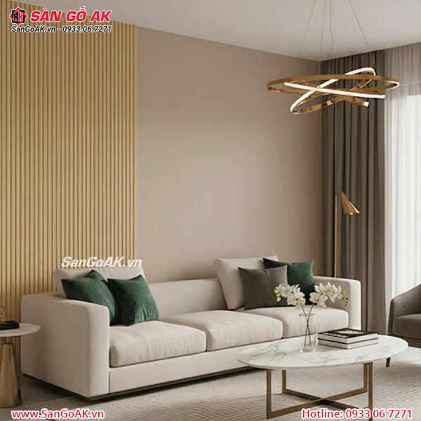 Ốp tường phòng khách sang trọng với lam sóng C2005-901 vân gỗ vàng nhạt