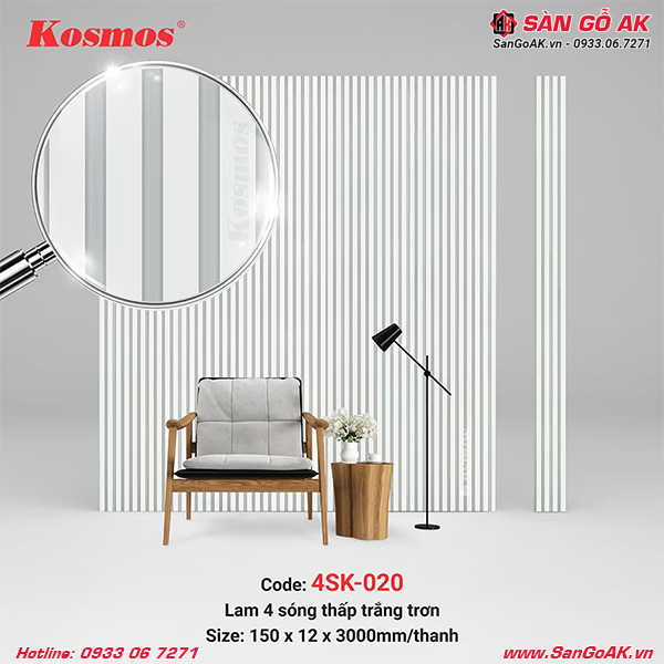 - Lam 4 Sóng Thấp Kosmos 4SK-020 Trắng Trơn: Vẻ Đẹp Tinh Tế Cho Không Gian Hiện Đại