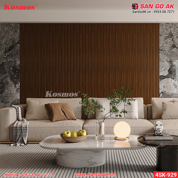 Ốp tường phòng khách với lam sóng 4SK-929 vân gỗ nâu