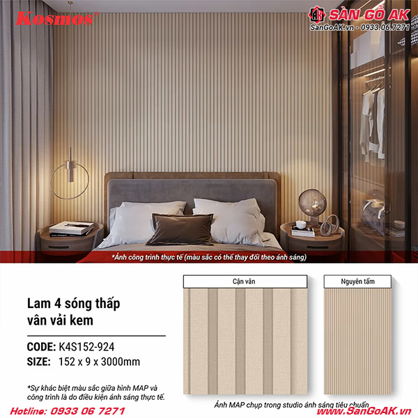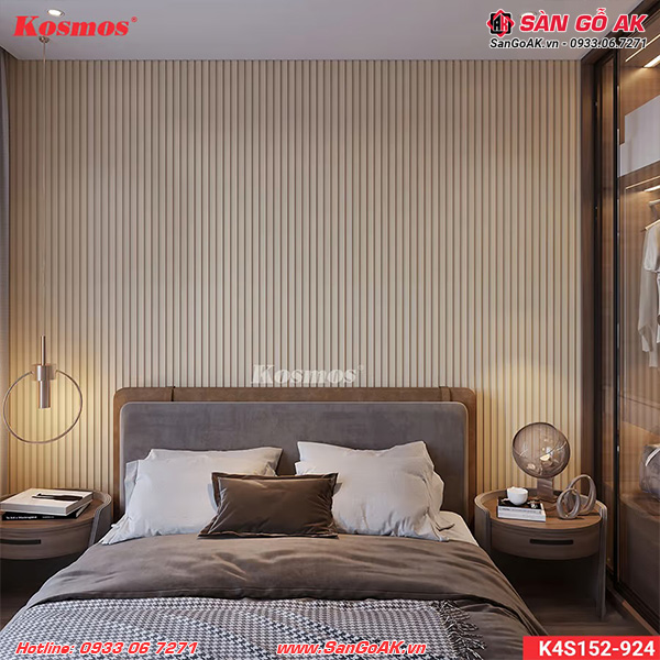 Ốp vách đầu giường phòng ngủ với lam sóng K4S152-924 vân vải kem