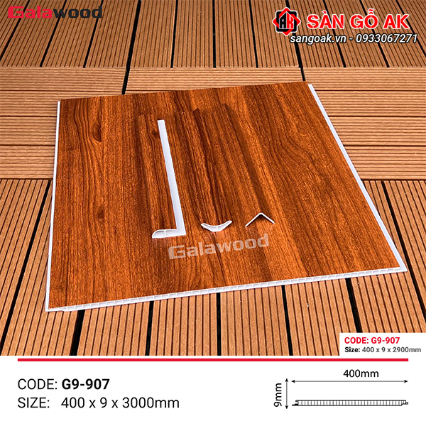 Tấm Nano G9-907 vân gỗ màu đỏ cam có khả năng chống nước, chống mối mọt tốt
