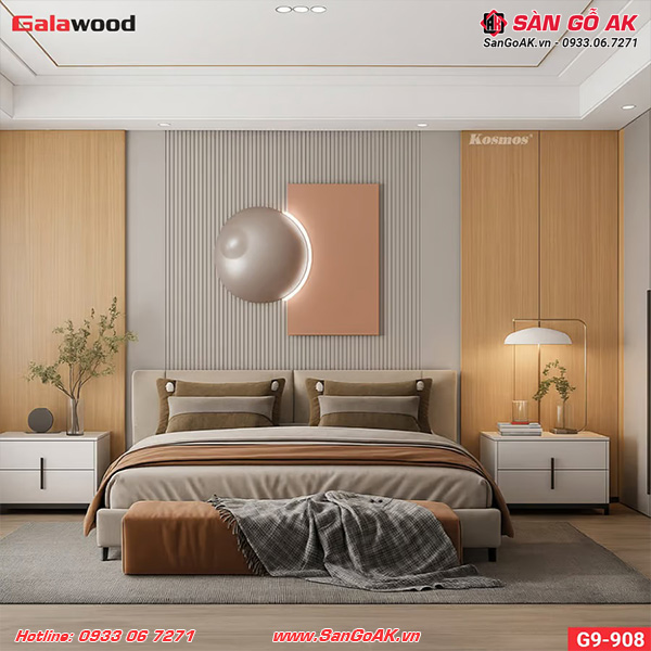 Vẻ Đẹp Tự Nhiên: Tấm ốp Nano Galawood G9-908 nổi bật với màu sắc và vân gỗ tự nhiên, tạo nên một không gian nội thất sang trọng và mộc mạc, phù hợp với nhiều phong cách thiết kế khác nhau.