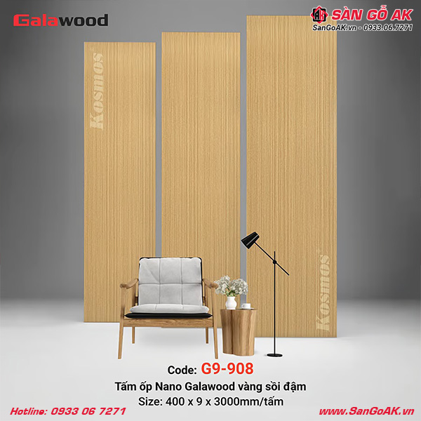 Hãy để tấm ốp Nano Galawood G9-908 vân gỗ sồi vàng đậm biến không gian sống của bạn trở nên nổi bật và ấm cúng hơn. Lựa chọn sản phẩm chất lượng chính là lựa chọn cho tương lai bền vững của ngôi nhà bạn!