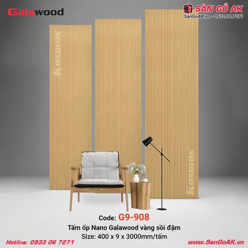 Tấm ốp Nano Galawood G9-908 vân gỗ sồi màu vàng đậm hiện đại, đẳng cấp