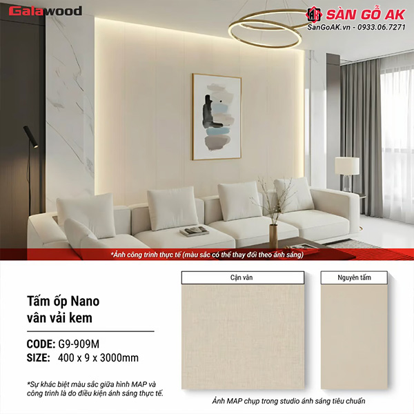 Tấm ốp Nano Galawood G9-909M vân vải kem sang trọng, hiện đại