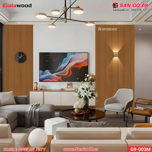 Trong thế giới trang trí nội thất hiện đại, việc tìm kiếm một vật liệu vừa mang lại vẻ đẹp sang trọng, tinh tế, vừa đảm bảo độ bền bỉ theo thời gian luôn là ưu tiên hàng đầu. Tấm ốp Nano Galawood G9-003M màu vàng sồi đậm chính là giải pháp hoàn hảo, đáp ứng trọn vẹn những yêu cầu khắt khe nhất, mang đến một làn gió mới đầy ấm cúng và đẳng cấp cho mọi không gian.