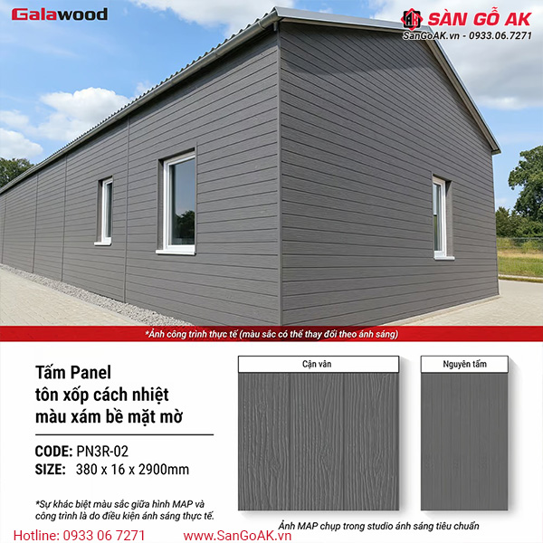 Để sở hữu sản phẩm Tấm Panel tôn xốp 3 lớp PN3R-02 3 rãnh vân gỗ 3D xám chính hãng với chất lượng đảm bảo và mức giá tốt nhất, Quý khách hãy liên hệ ngay với SÀN GỖ AK. Chúng tôi tự hào là đơn vị phân phối chính thức dòng sản phẩm Panel cách nhiệt ngoài trời.