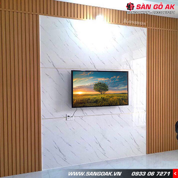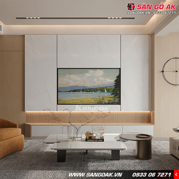 Trang trí vách tivi phòng khách trở nên ấn tượng, đẳng cấp hơn với tấm ốp vân đá PVC2007